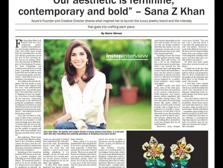 Hello! Pakistan – Celebrates AZURE’s First Anniversary Hello! Pakistan talks to Sana Z Khan, Founder & Creative Director, of luxury jewellery... by: Azure 0 Comments